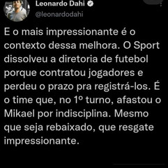 [8/12 ] DÉCIO MEDEIROS: O Athletico PR um rival Rubronegro que deve ser um espelho pra nosso Leão, a poucos anos atrás eles tinham uma receita equivalente ao Sport, hoje estão muito a frente em todos sentidos, com estádio de 1° mundo, títulos da Copa do BR e Bi Sulamericano. E elenco de 1ª qualidade.