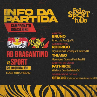 [28/10 ] DÉCIO MEDEIROS: https://ge.globo.com/sp/vale-do-paraiba-regiao/futebol/brasileirao-serie-a/noticia/bragantino-x-sport-veja-onde-assistir-escalacoes-desfalques-e-arbitragem-da-partida.ghtml