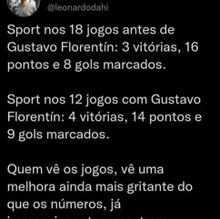Aqui uma constatação, mesmo com o insucesso dos 4 últimos jogos com 3 derrotas e 1 empate, estas derrotas foram fora de casa e o empate em casa com o Santos na Arena PE, que é o reflexo de como a nossa torcida tem influência direta no sucesso do time, e as vitórias anteriores contra o Juventude e Corinthians também foram com a volta da nossa torcida após pandemia. Isto será o combustível necessário pra conseguirmos as 4 vitórias nos 4 jogos ainda em casa. #PeloSportTudo.