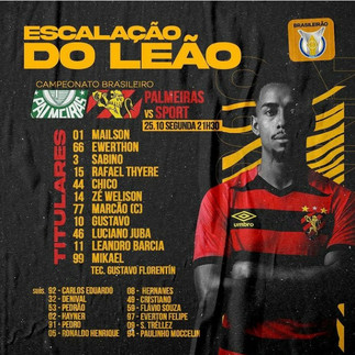 Agora é fazer o mesmo no último jogo em casa na próxima quinta contra o Athletico PR, inclusive colocando pra jogar também os 2 zagueiros da base, o Renzo e Chico no lugar de Thyere e Sabino. Com certeza com a nossa torcida poderemos ter a nossa 10a vitória e fazer 40 pontos e com a maioria de jovens jogadores da base, pra dar uma mostra que poderemos contar com eles na temporada de 2022. #PeloSportTudo.
