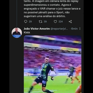 Este 2° tempo mostrou porque o Sport não ganha até em casa, não por falta de brio, garra e determinação, mas por limitação ofensiva de um elenco pequeno, sem jogadores ofensivos de qualidade, e pela perseguição dos juízes da CBF, hoje mais uma vez fomos garfados! uma expulsão de René trocada por amarelo no 1° tempo e um pênalti em Gustavo empurrado pelas costas no 2° tempo. Nem o VAR chamou!!!