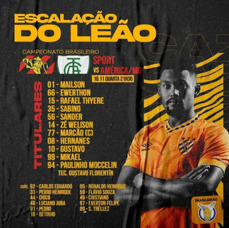 Previsão do Sport terá 6 jogadores da base no time titular, Mailson, Ewerthon, Thyere, Sabino e Chico, no meio Marcão, Zé Welison e Hernanes, no ataque Gustavo, Juba e Mikael.